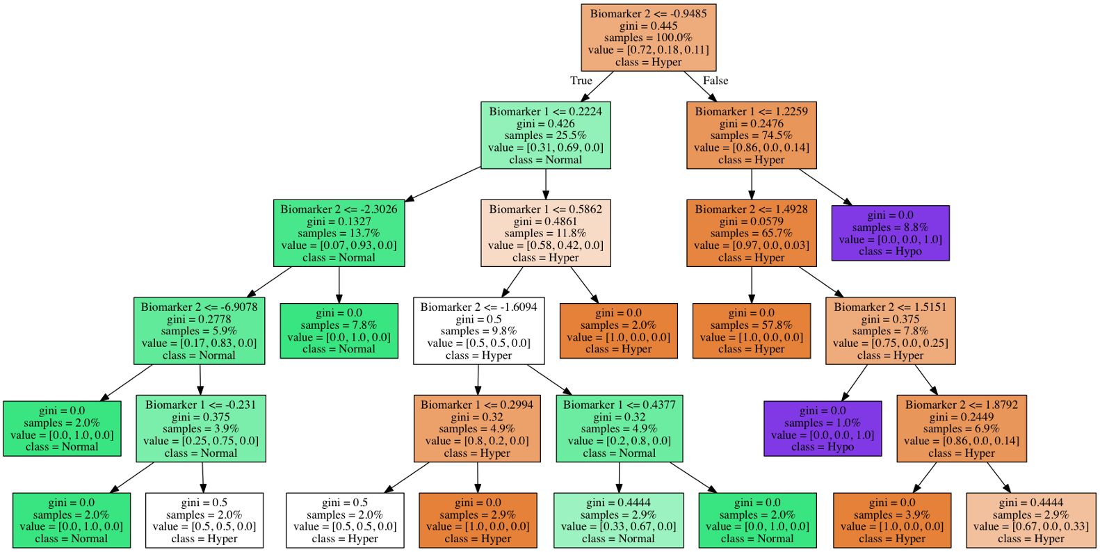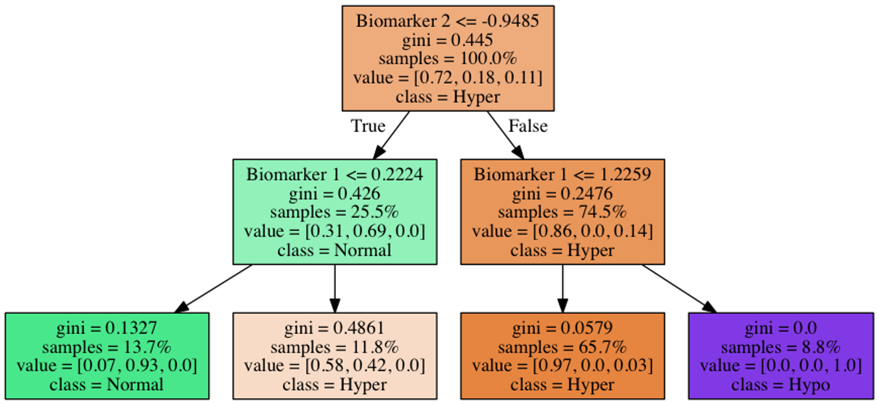Every path from root to leaf represents a series of if-then rules — this is what makes decision trees interpretable